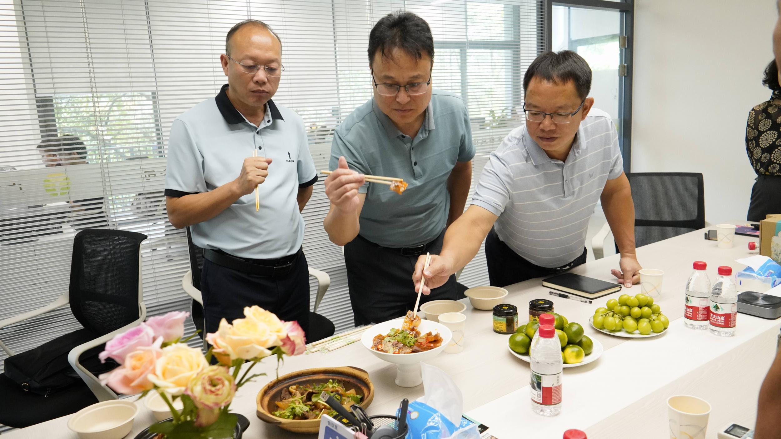 考察期间,益信集团董事长余益耀首先对益信集团的发展历程、产业布局和战略规划作了简要介绍。广东省益信食品有限公司总经理谢晔斌就公司目前主要产品线进行了系统讲解,通过视频等多种形式展示了广式牛杂煲、水晶牛肉、肥肠啫啫煲等经典及创新菜品。恭城县县长一行还现场品鉴了多款产品,对其讲究的工艺、稳定的口味和独特的风味表示高度赞赏。